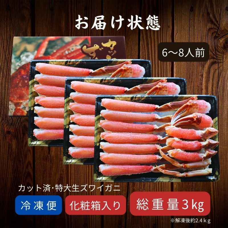 カニ鍋の決定版!鮮度抜群で食べやすい。こだわりの生食可ズワイガニ 早割 5%OFF 極上【特大】生ズワイガニ 2.4kg 【総重量 3kg】 (800g×3p)(6~9人前)特大サイズ(5L超) 送料無料 生食可 かにカット済み ずわいがに ズワイ蟹 かに  希少 こだわり 冷凍 コンパクト カニ鍋 ギフト お歳暮