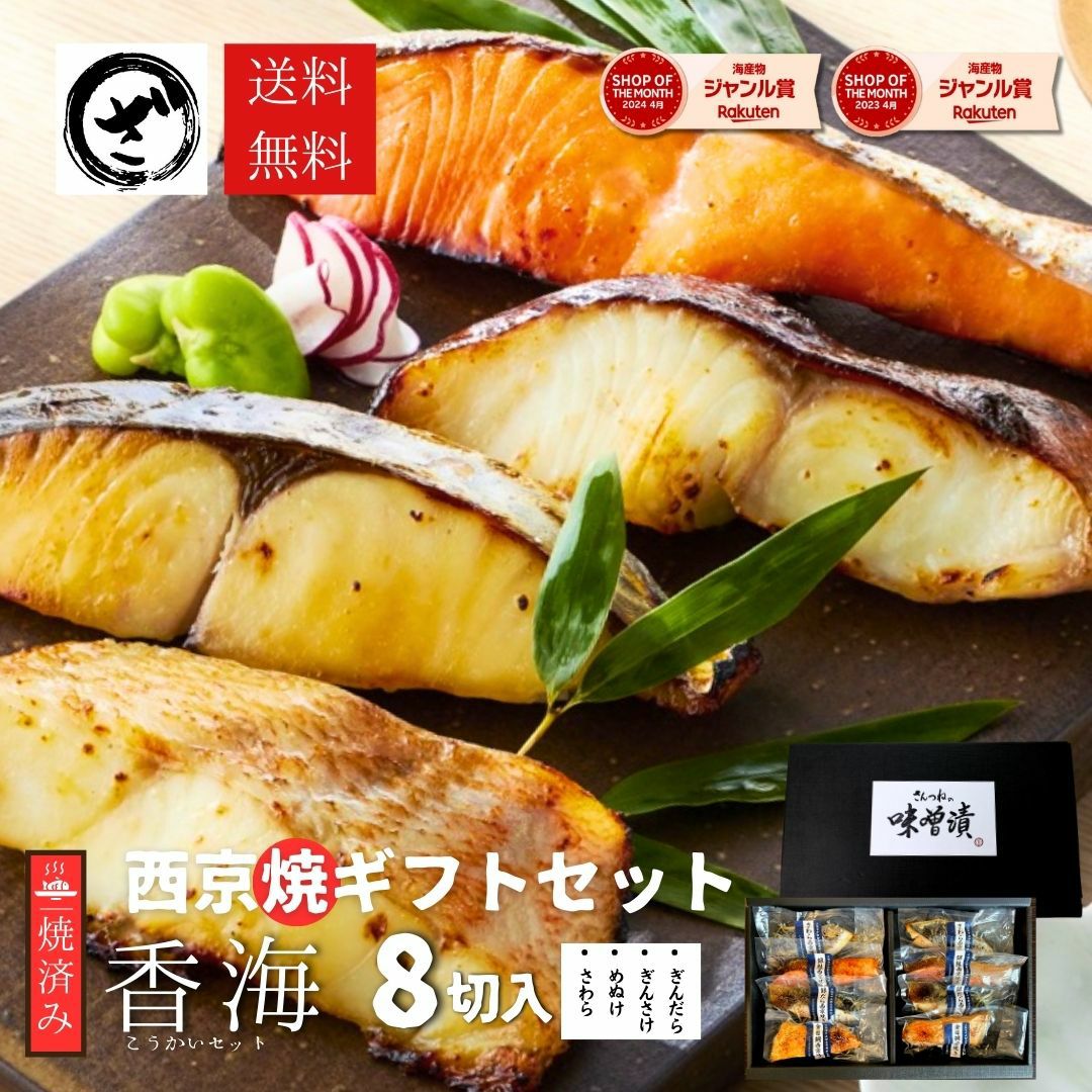 焼き済西京漬け 人気の銀だらも入った人気魚オールスターズ 手間なし、味よし、香りよし! 【焼き済】西京漬けセット8切入 【香海】こうかい 送料無料 味噌漬け 贈答 西京焼き 焼き魚 味噌漬け 銀だら入 焼き済み 簡単 手間いらず