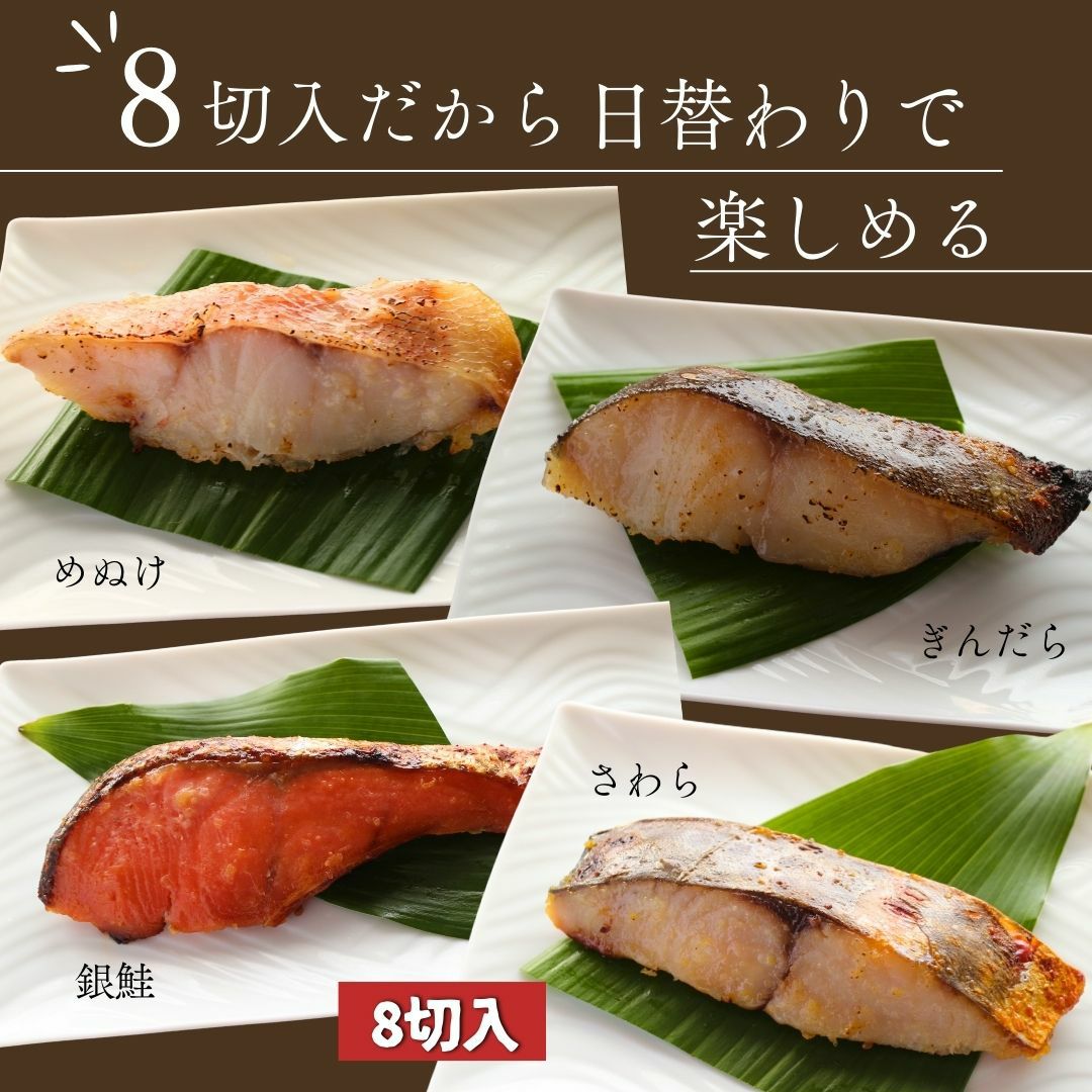 内容量 銀だら、さわら、銀鮭、めぬけ、各2切入 計8切