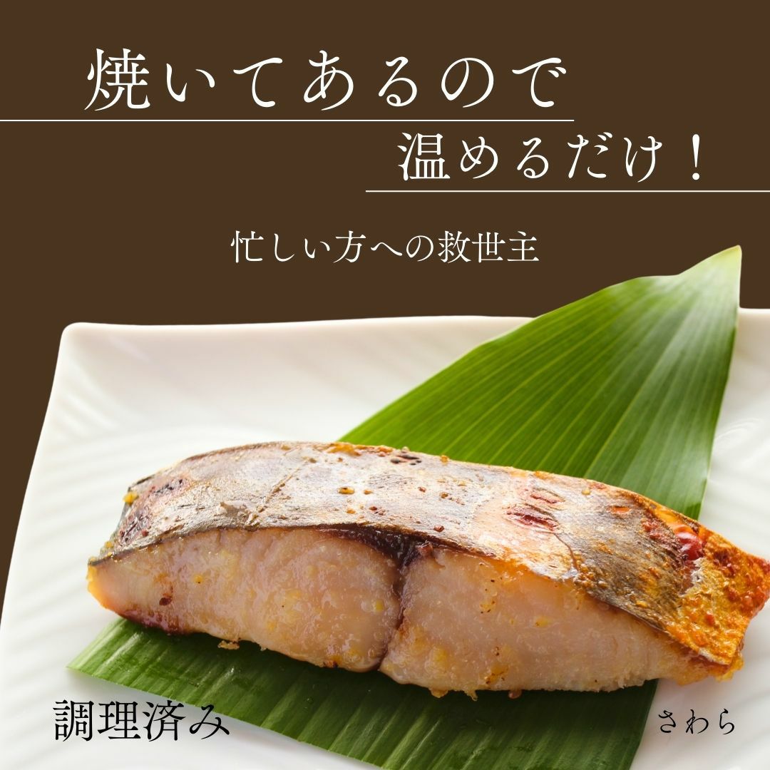 原材料表記 (さわら(韓国産)、銀鮭(チリ産)、銀だら(アメリカ産)、めぬけ(アイスランド産)、米味噌、(米、大豆、食塩)、本味醂、砂糖、清酒、(一部に大豆、さけを含む)