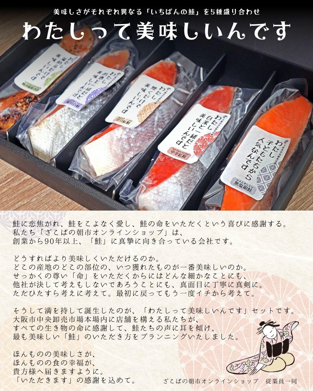 【鮭の日特典】鮭の人生ゲーム付き♪さんつねがお勧めする個性ある鮭の味比べセットです!お気に入りの一品をお探しください! わたしって美味しいんです 5切入セット 送料無料 さけ サケ 塩鮭 無塩 甘口 中辛 新巻鮭 ギフト 贈答