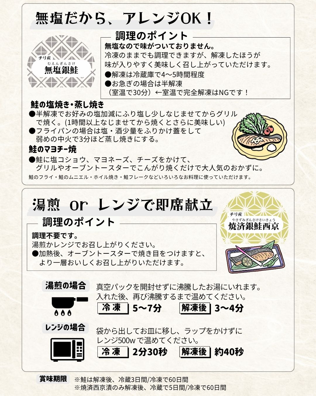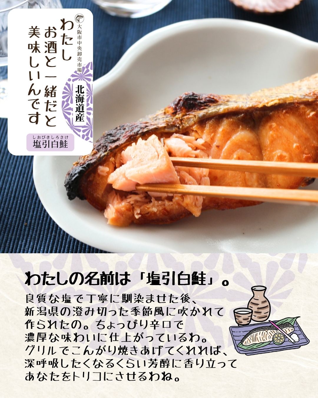 原材料表記 ①塩引白鮭-白鮭(北海道産)、食塩