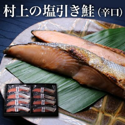 新潟の村上で古くから伝わる製法で、塩漬けした鮭を1週間干し上げた逸品です。白鮭とは思えない濃厚な味わいは、ご飯のお供に最適です。 村上の塩引き鮭 切り身 8切 ギフトボックス 秋鮭 冷凍便 辛口 さけ しゃけ サケ 送料無料 鮭辛口 鮭の贈り物 塩鮭 新巻鮭