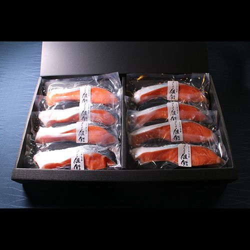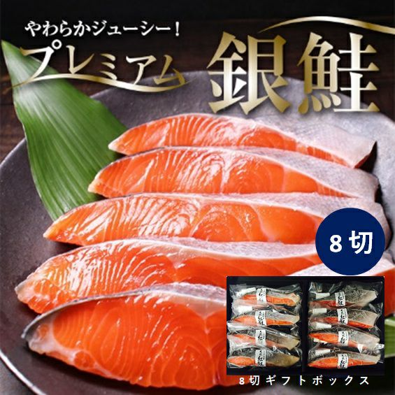 とってもジューシー銀鮭!鮭のさんつねが年間一番販売する鮭です。 プレミアム銀鮭切身約80gx8切 ギフトボックス【送料無料】 ギフト プレゼント 美味しい鮭 塩鮭 いつもの鮭 鮭の贈り物 塩鮭 新巻鮭 さけ サケ しゃけ