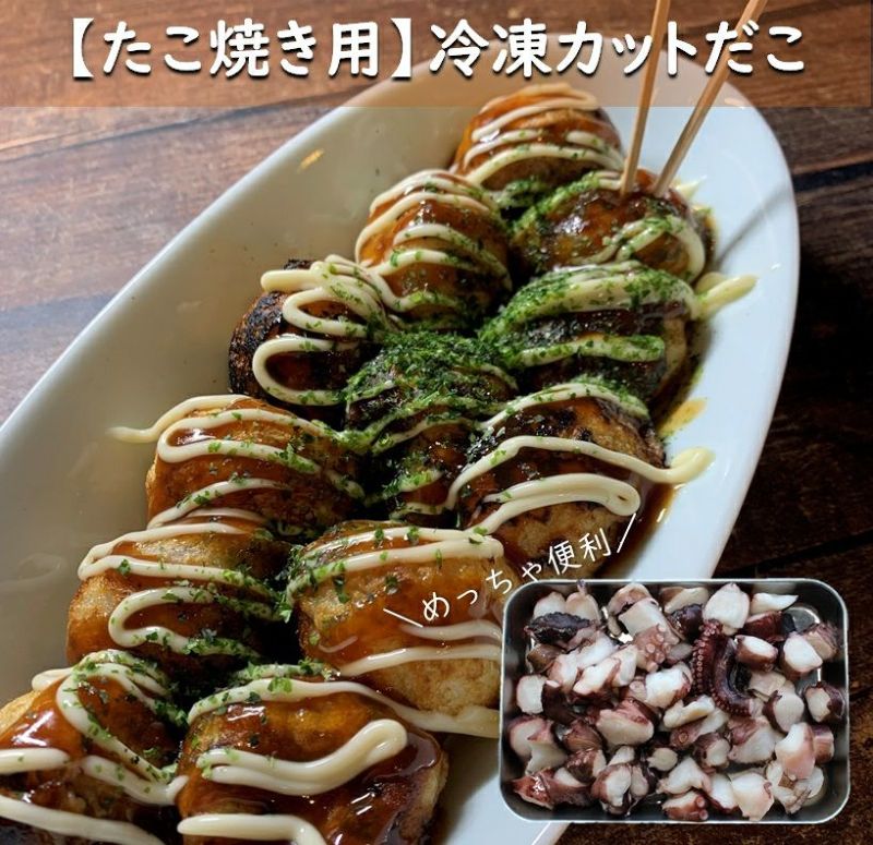 ※カット済の新鮮な冷凍だこ(シマダコ)をたっぷり1kg。シマダコは旨みの強い美味しいタコです。約285個ほど入っています。タコ焼きパーティもOK(1人15個食べても19人分!)の大ボリューム