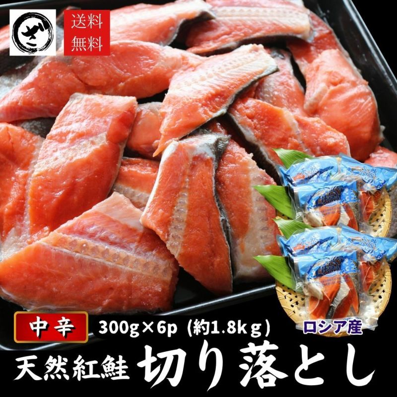 希少な天然紅鮭の切り落としです!中辛仕上げなのでご飯のお供にぴったり! 天然紅鮭切り落とし 1.8kg(300g×6) 送料無料 べにさけ ベニサケ 塩鮭 新巻鮭 中辛 切落し 特大 規格外 訳あり BBQ コスパ鮭
