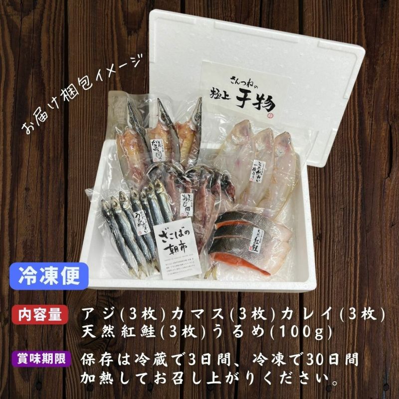 内容量 5種×3枚・アジ・カマス・カレイ・うるめ丸干し・紅鮭