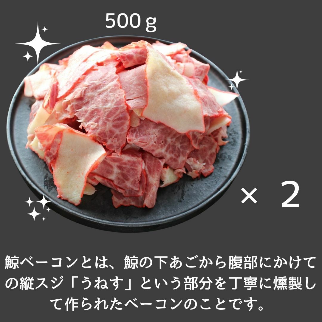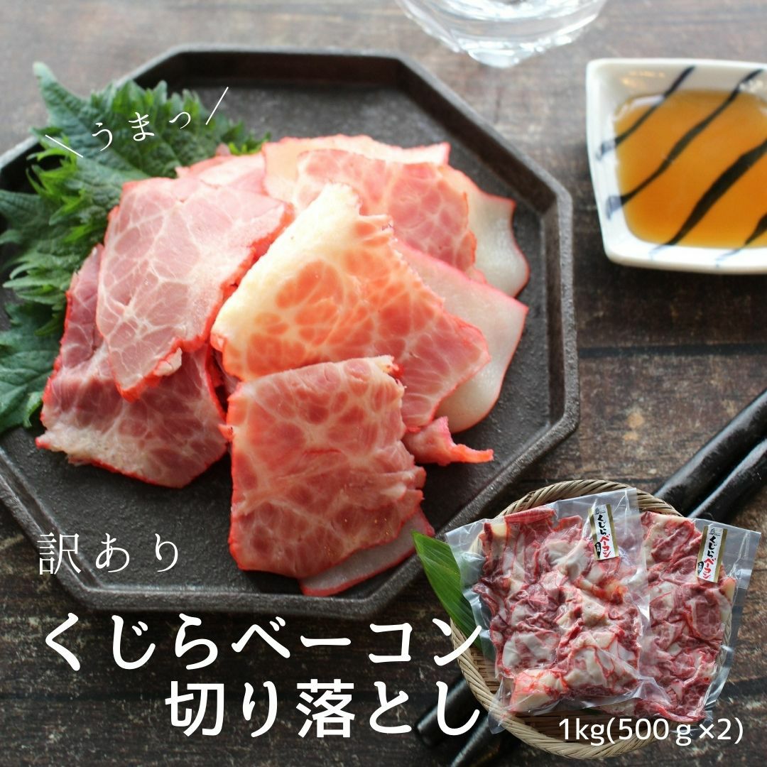希少な鯨ベーコンの切り落とし!お買い得価格でおご提供です! 【訳あり】くじらベーコン 1kg(500g×2) 送料無料 業務用 切り落とし 冷凍 クジラ 希少 珍味 アテ クジラベーコン 鯨ベーコン