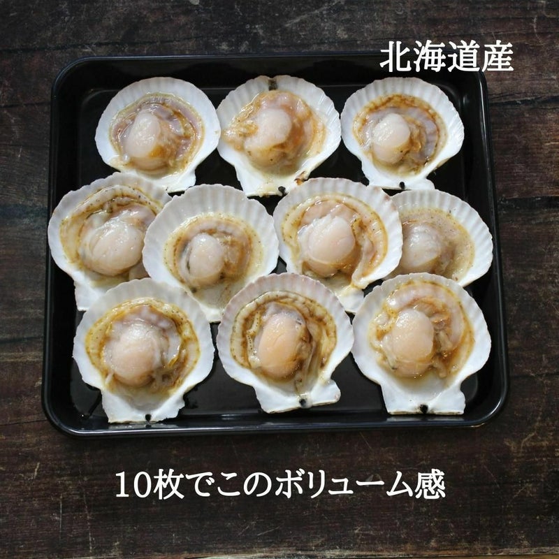 美味い!甘い!バター醤油で旨味倍増まちがいなし! 北海道産 殻付きホタテ10枚 送料無料 加熱用 国産 片貝 ほたて 海鮮 BBQ