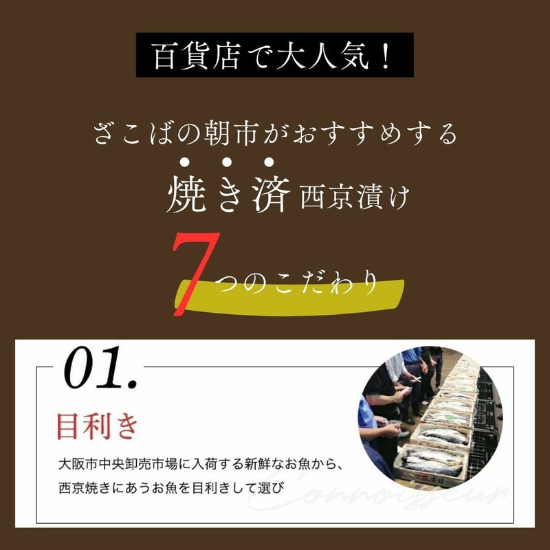 西京漬けの中でダントツ一番人気を誇るぎんだら。口の中でとろけるその食感は別格の美味しさです。脂乗りが最高の新鮮なぎんだらを使用