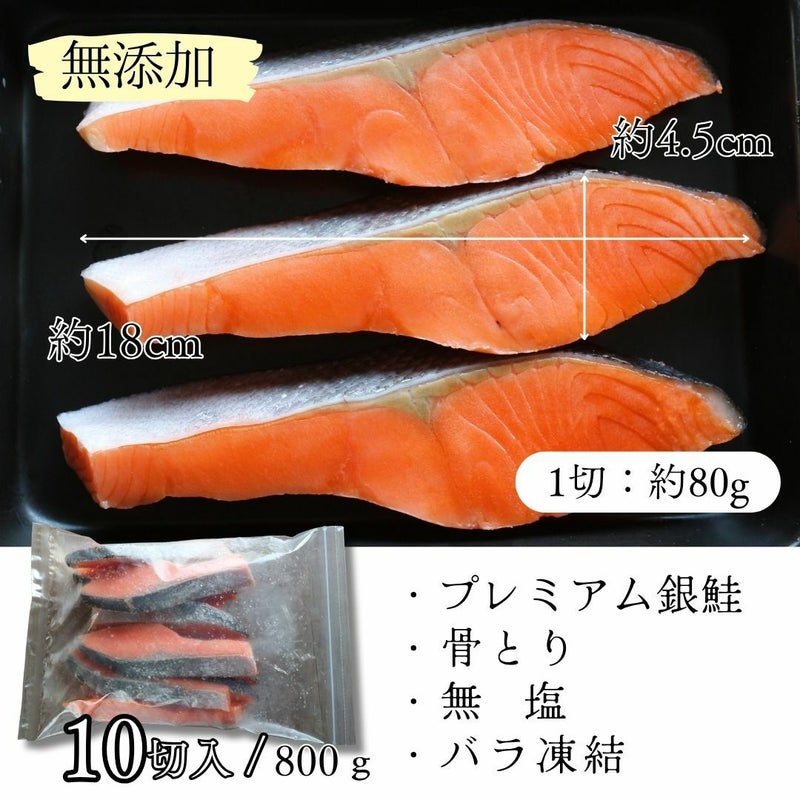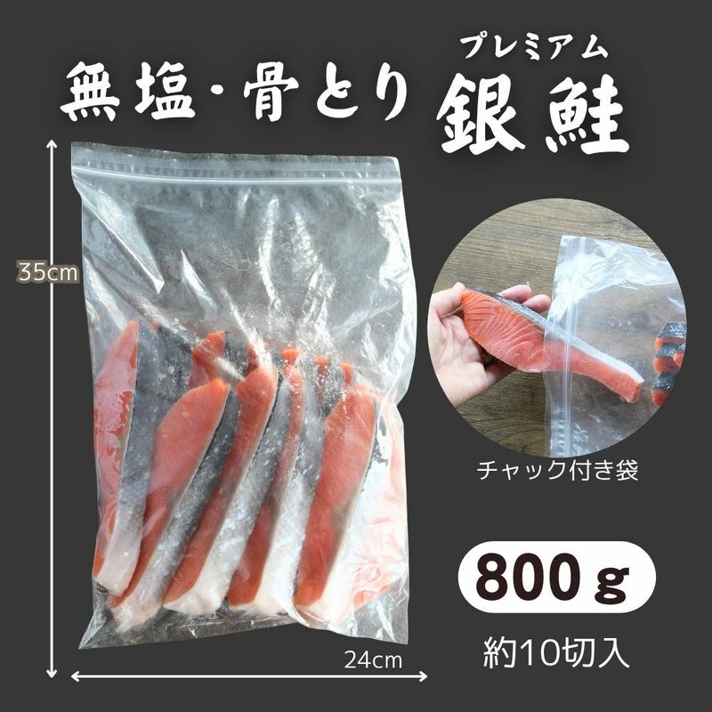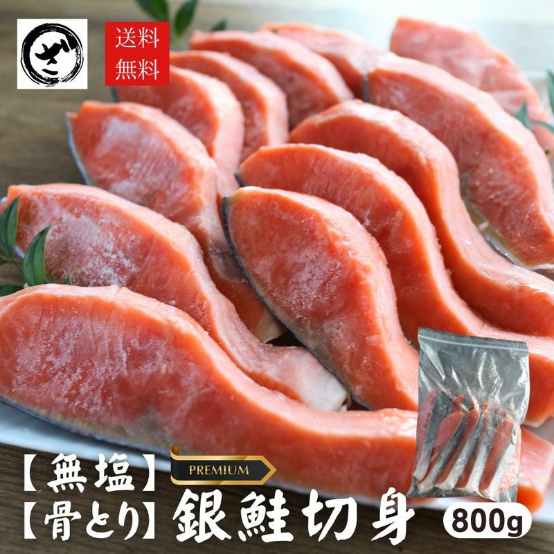 無塩で骨取りのとってもジューシーな銀鮭!無塩なので使い勝手抜群!様々な料理に、お弁当に大活躍間違いなし! 無塩 骨取り プレミアム銀鮭切身約800g 送料無料 無添加 鮭 さけ サケ 銀さけ 銀サケ 塩鮭