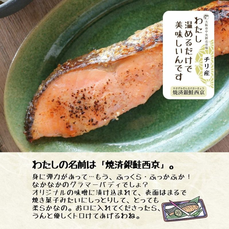 ⑤焼済 銀鮭西京漬(味噌漬け)-銀鮭(チリ産)、米味噌、(米、大豆、食塩)、本味醂、砂糖、清酒、(一部に大豆、さけを含む)