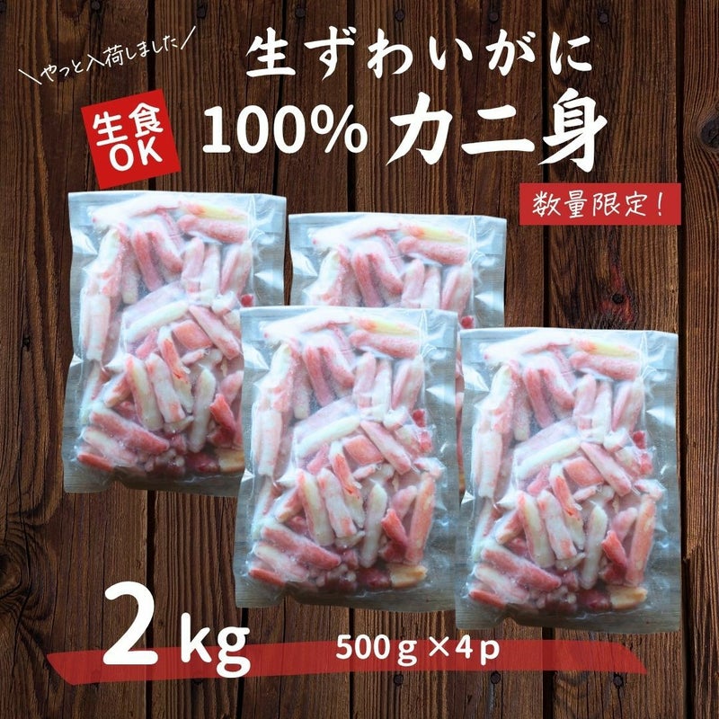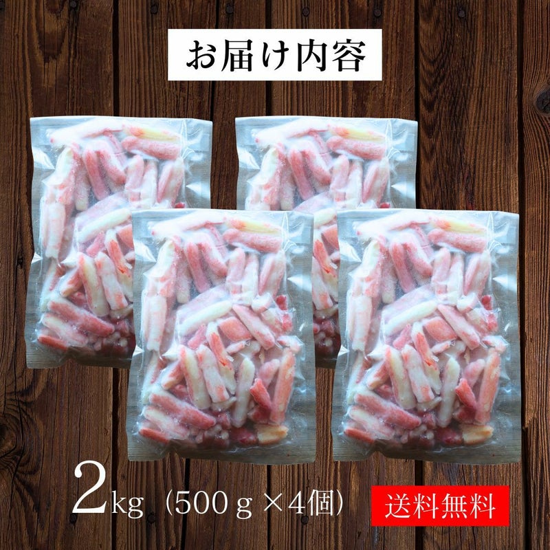折れ欠け混じりの為、激安!可食部ほぼ100% 訳あり カニポーション 総重量約2kg (500g×4) 【折れ】 送料無料 生食可 生ずわい蟹 折れ棒 ポーション お取り寄せ お刺身 丼