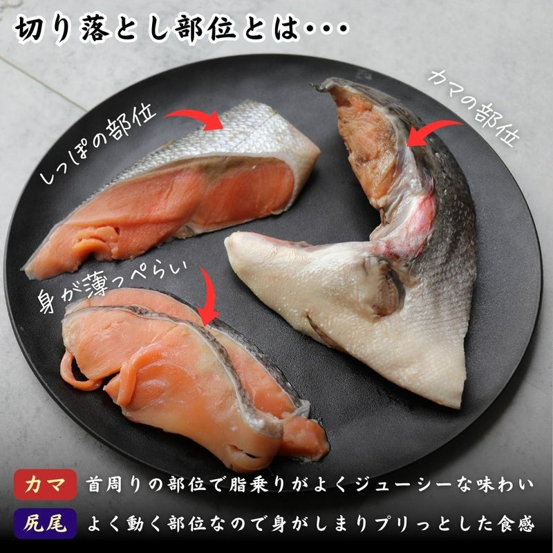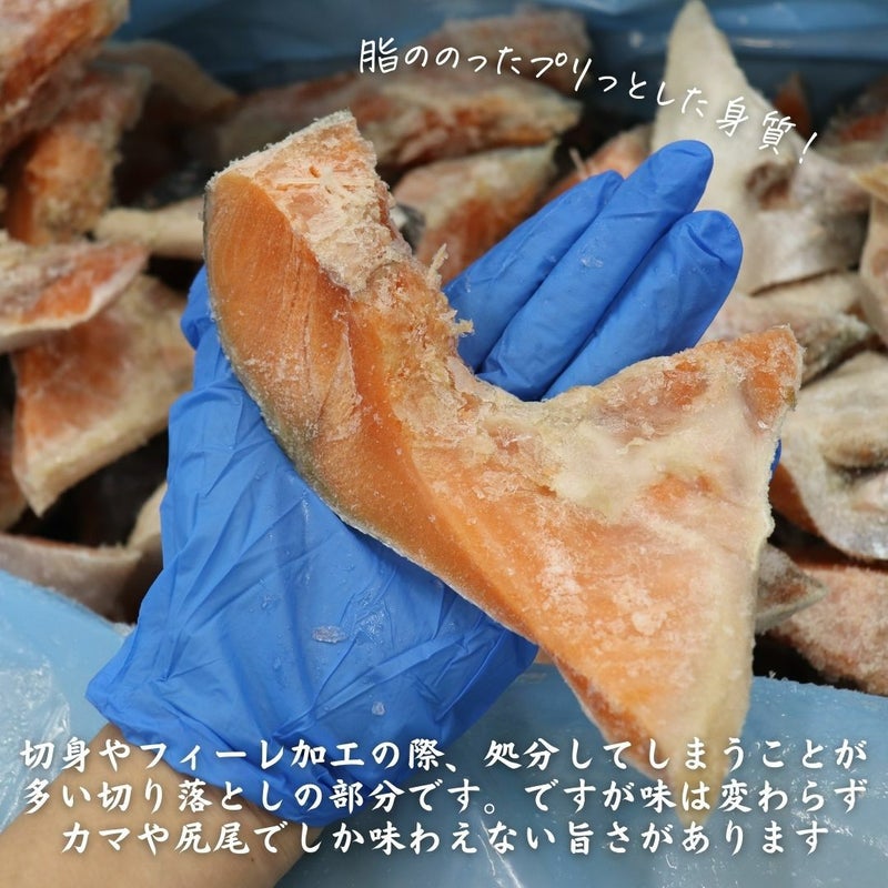 脂がのってて、ふんわりジューシー! 銀鮭切り落とし 約1kg 送料無料 冷凍 鮭 さけ サケ かま 尾っぽ 切落し 特大 規格外 訳あり BBQ いつもの鮭