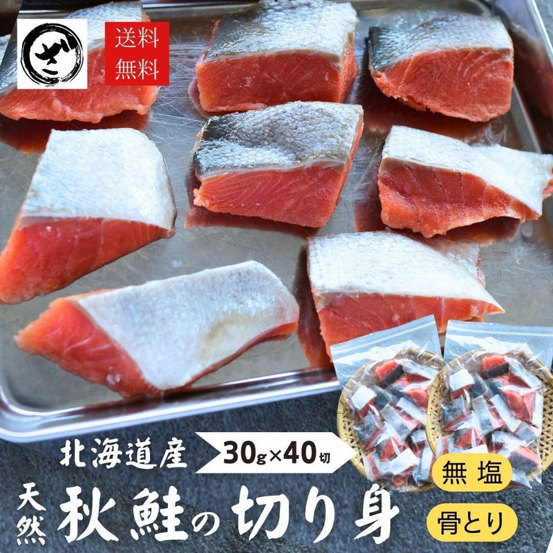 無塩骨取り北海道産の秋鮭の切身!国産で無添加で骨がないのが欲しいとの声から誕生しました! 無添加 国産 無塩 秋鮭切身 2袋 約30g×40切入 送料無料 骨取り 骨なし 天然 魚 鮭 さけ サケ 焼くだけ そのまま使える お弁当 ストック