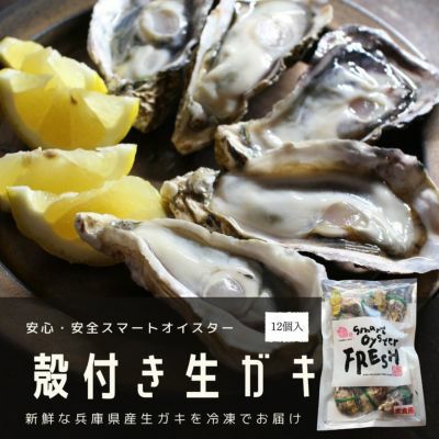 旨みたっぷり♪新鮮な兵庫県産の殻付き牡蠣! 生食用 殻付きかき 2sサイズ 12個入り スマートオイスター 兵庫県産 かき 牡蠣 冷凍 生ガキ 殻付き生ガキ 生牡蠣