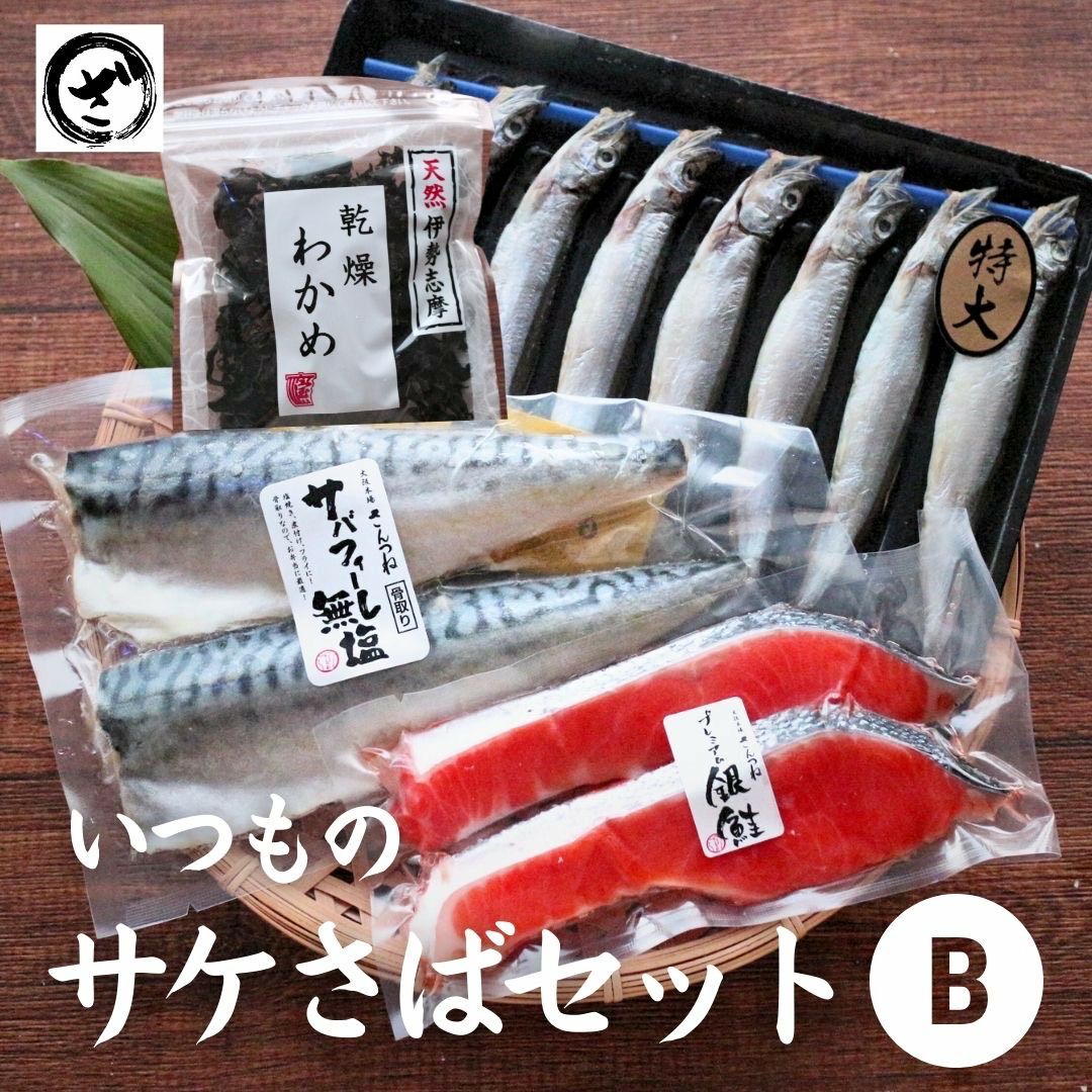 家の冷蔵庫にあったら助かるアイテム鮭とサバ!さらにししゃももついたちょっとが嬉しいセットです! いつものサケさばセットB 鮭 さけ 鯖 サバ ししゃも シシャモ わかめ ワカメ ちょっとが嬉しい