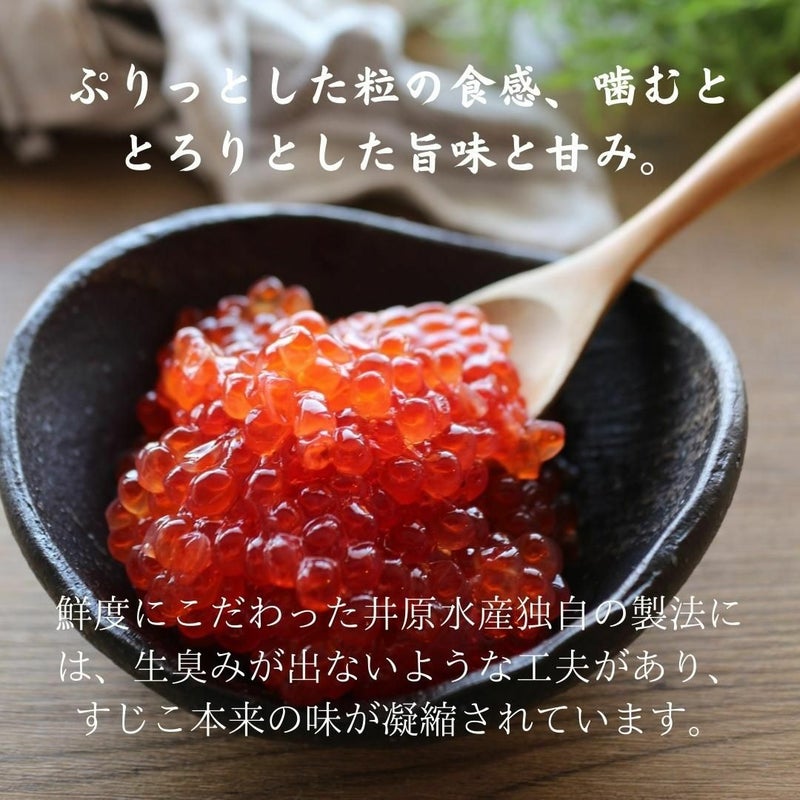 大阪市中央市場・本場で一番高価で一番おいしい一押しのスジコです!! 北海道の老舗メーカー【ヤマニ井原水産】信頼の逸品です。 お口の中でとろ~りとろけるような美味しさの最高級品です。すじこは甘塩に漬け込んでからしばらく塩漬けにし、熟成させた本造りの最高級品です。珠玉に輝く一粒一粒にこめられた腕と心が引き出したまろやかな風味をお楽しみいただけるお品です。