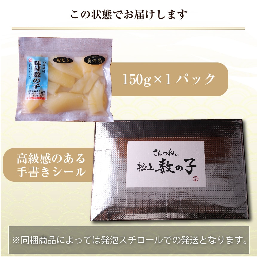 希少な北海道産、便利な少量パック 味付け数の子北海道産お徳用150g かずのこ カズノコ 北海道産 国産 冷凍 味付き 高級