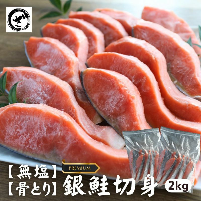 無塩で骨取りのとってもジューシーな銀鮭!無塩なので使い勝手抜群!様々な料理に、お弁当に大活躍間違いなし! 無塩 骨取り プレミアム銀鮭切身約2kg 無添加 鮭 さけ サケ 銀さけ 銀サケ 塩鮭