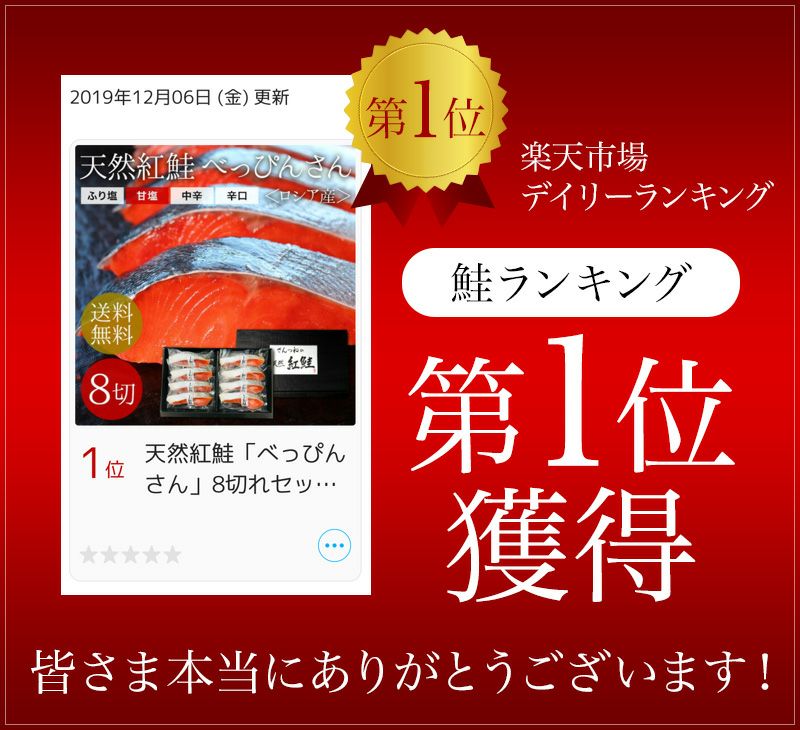 他の画像を見る コスパ最高!おいしい紅鮭はこちら!天然紅鮭「べっぴんさん」 天然紅鮭「べっぴんさん」8切れセット【贈答用】 ロシア産 送料無料 鮭好き ギフトボックス 鮭の贈り物 塩鮭 新巻鮭 さけ サケ しゃけ 送料無料 ギフトにおすすめ◎ クール便でお届け ¥ 4,298 税込 年末年始,お正月,年越し,,,,,,,丸々太ったおいしそうな鮭“べっぴんさん” 詳細を見る お気に入りに登録する