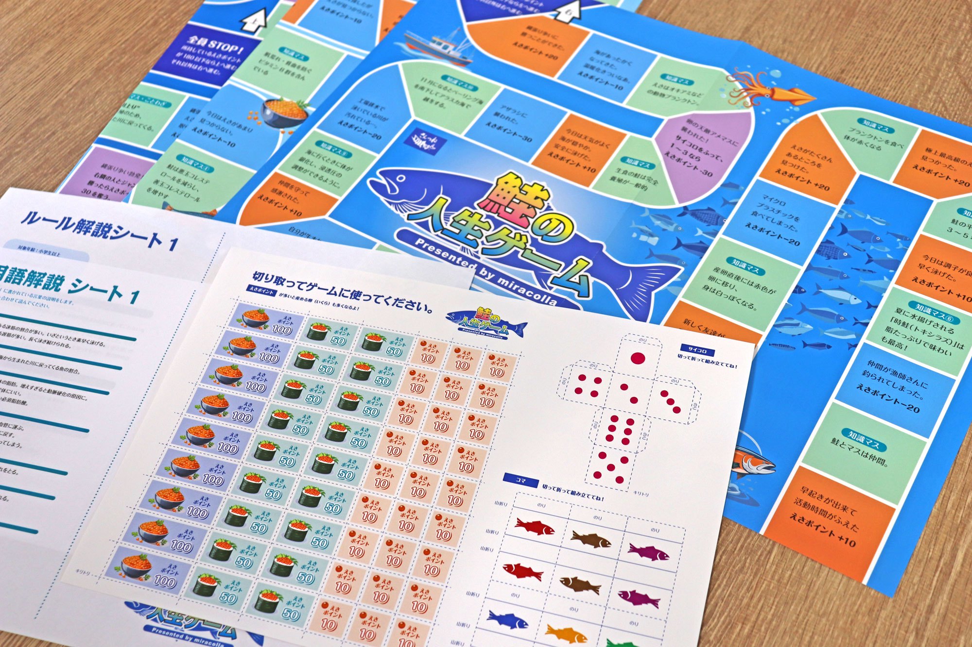 世界中で入手するのはここだけ!「鮭の人生ゲーム」をおつけします! 鮭の生態を学びながら楽しくゲームできますよ。