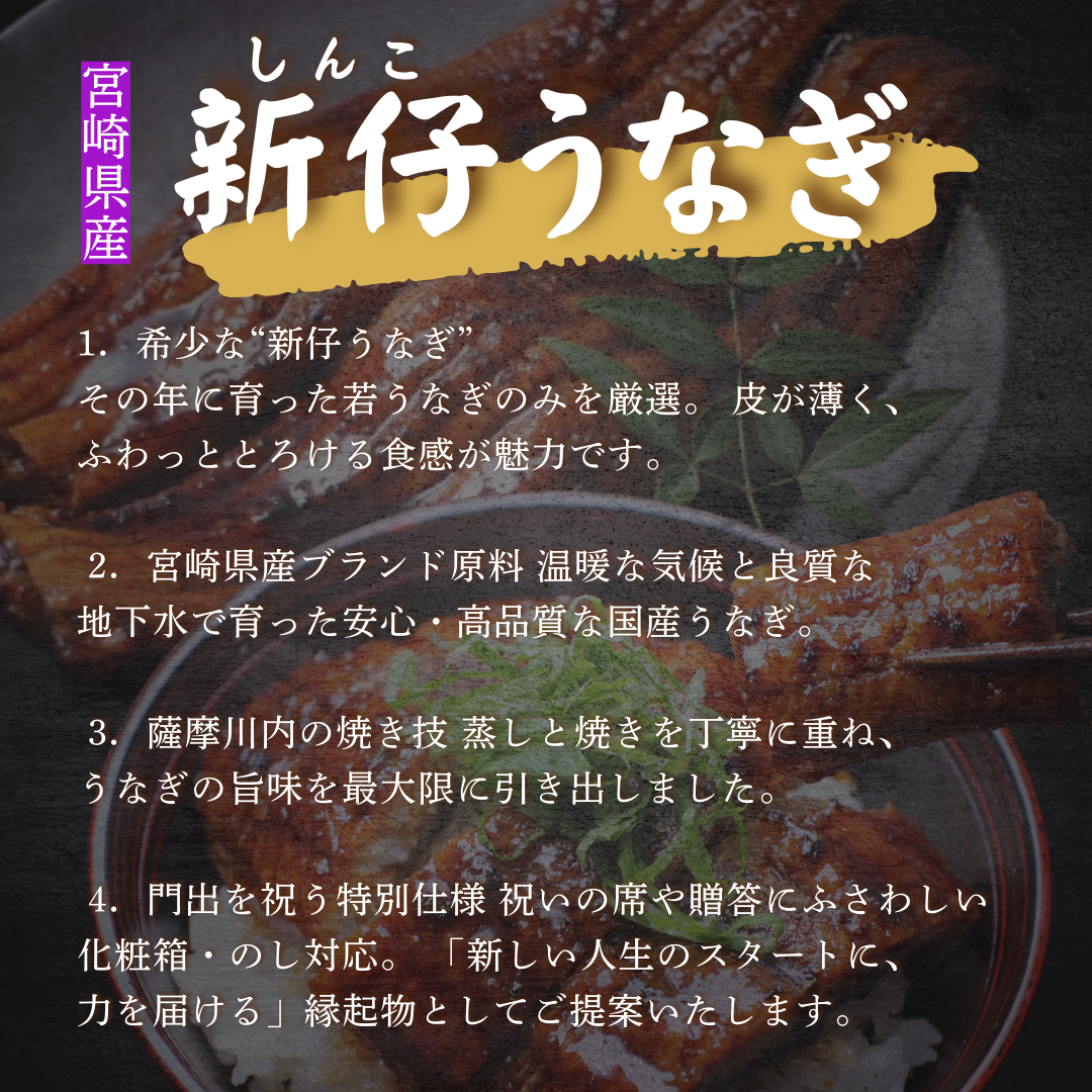 商品名:晴れの日うなぎ『今日からの人生、うなぎのぼり』(宮崎県産 新仔鰻蒲焼)
