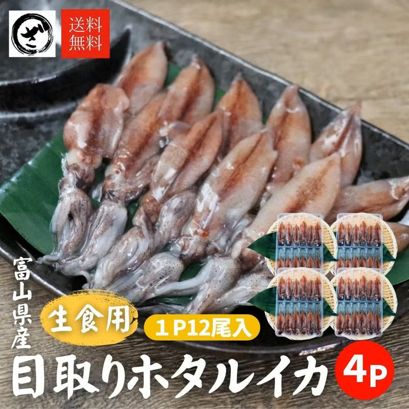 「生食用 富山県産 目取りホタルイカ」は12尾入り×4パックで