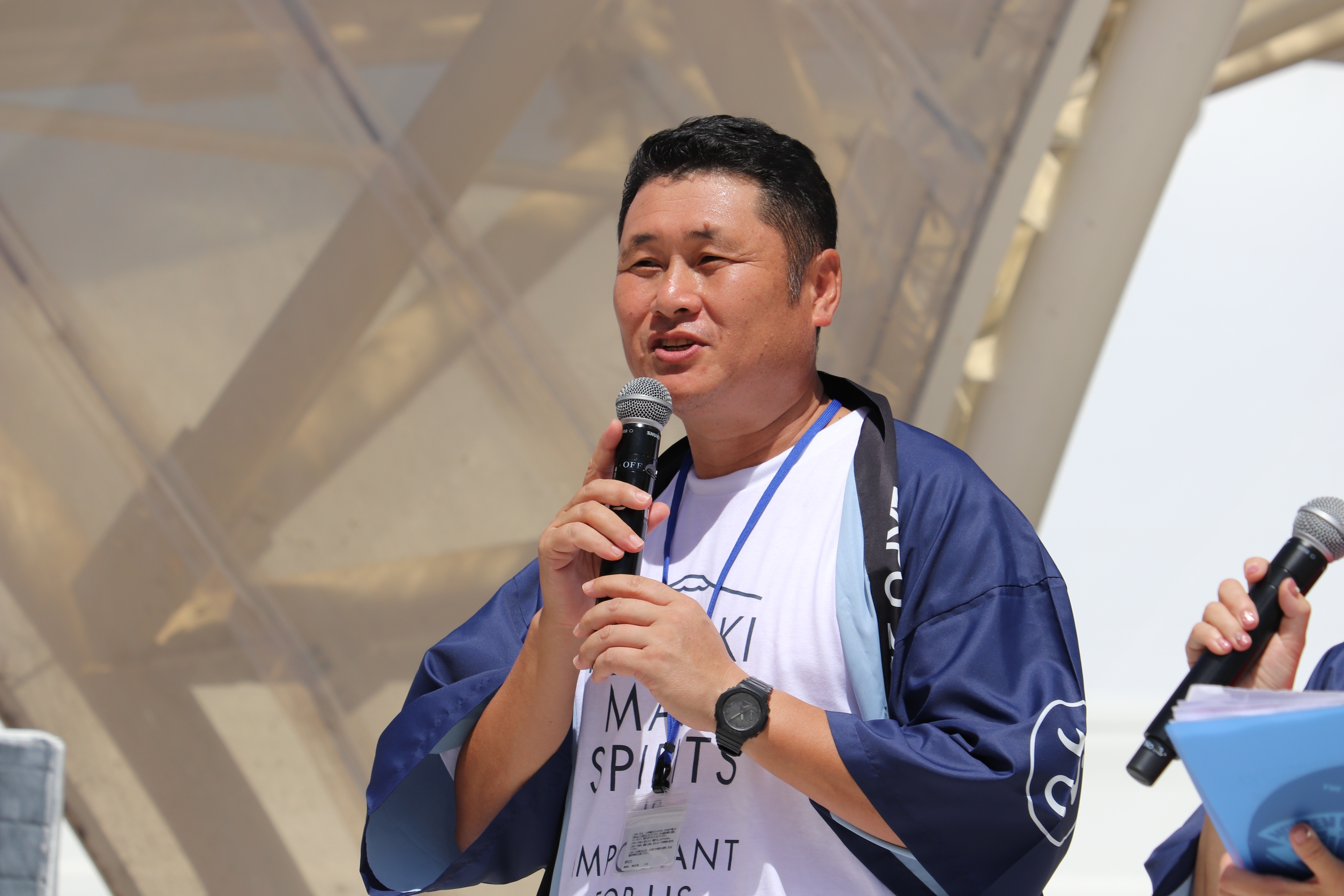 鎮田さんは早朝(正確には深夜)から市場の通常の仕事を済ませて会場に駆けつけてくれました。EC事業部部長でありながら、普段のざこばイベントも取り仕切る、実行委員の一人! いくつもの仕事をこなしながら、万博という大きなイベントまで関わることになって、心の中では疲労と不安と緊張でいっぱいだったかと思います。でもこの人は絶対に疲れた表情を人前で顔に出さない。いつも誰に対しても笑顔。それってスゴイこと。なかなかできることじゃないよな~と密かに尊敬しているんです🤗 今日は、奥様と娘ちゃんが会場へ応援に! 鎮田さんの笑顔も10倍増しですね!