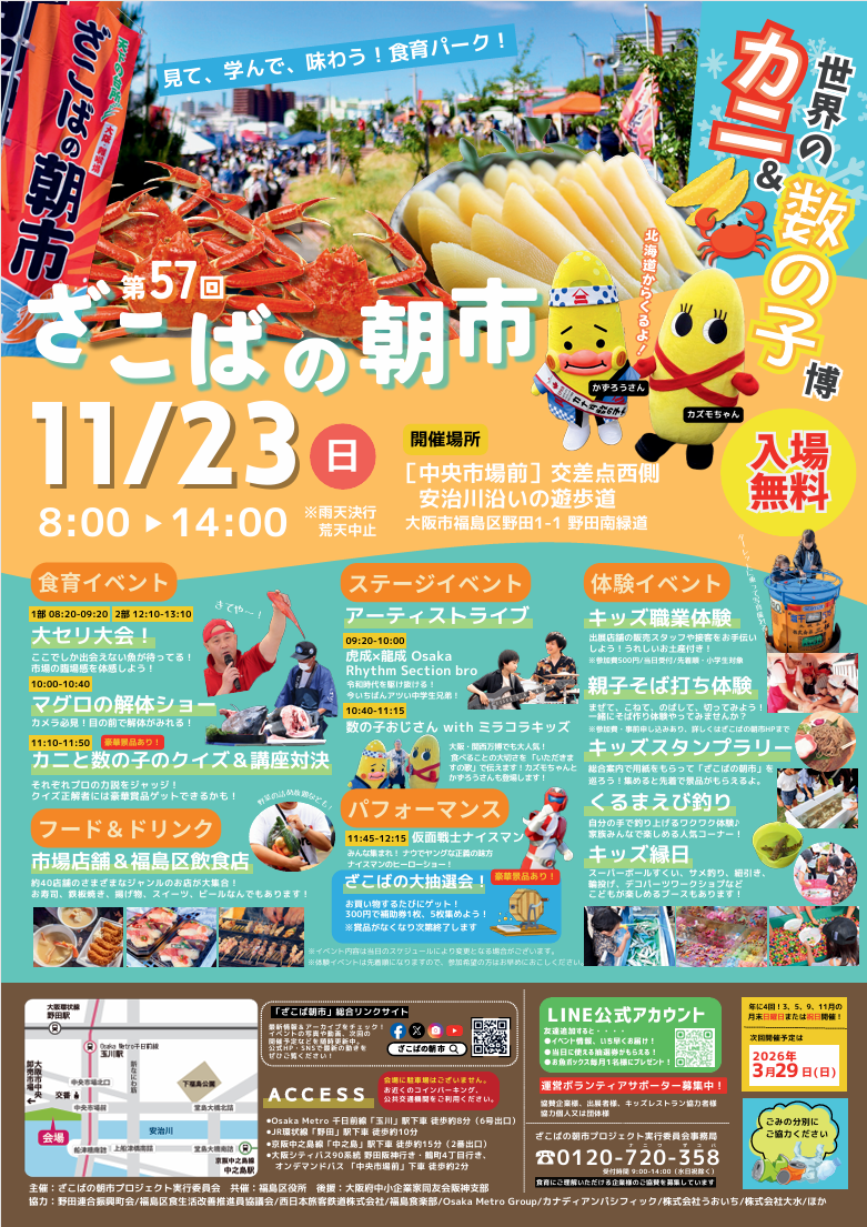 2025.11.13数の子のゆるキャラがやって来る!? 大阪市中央卸売市場前遊歩道にて『ざこばの朝市 冬の味覚祭り』開催