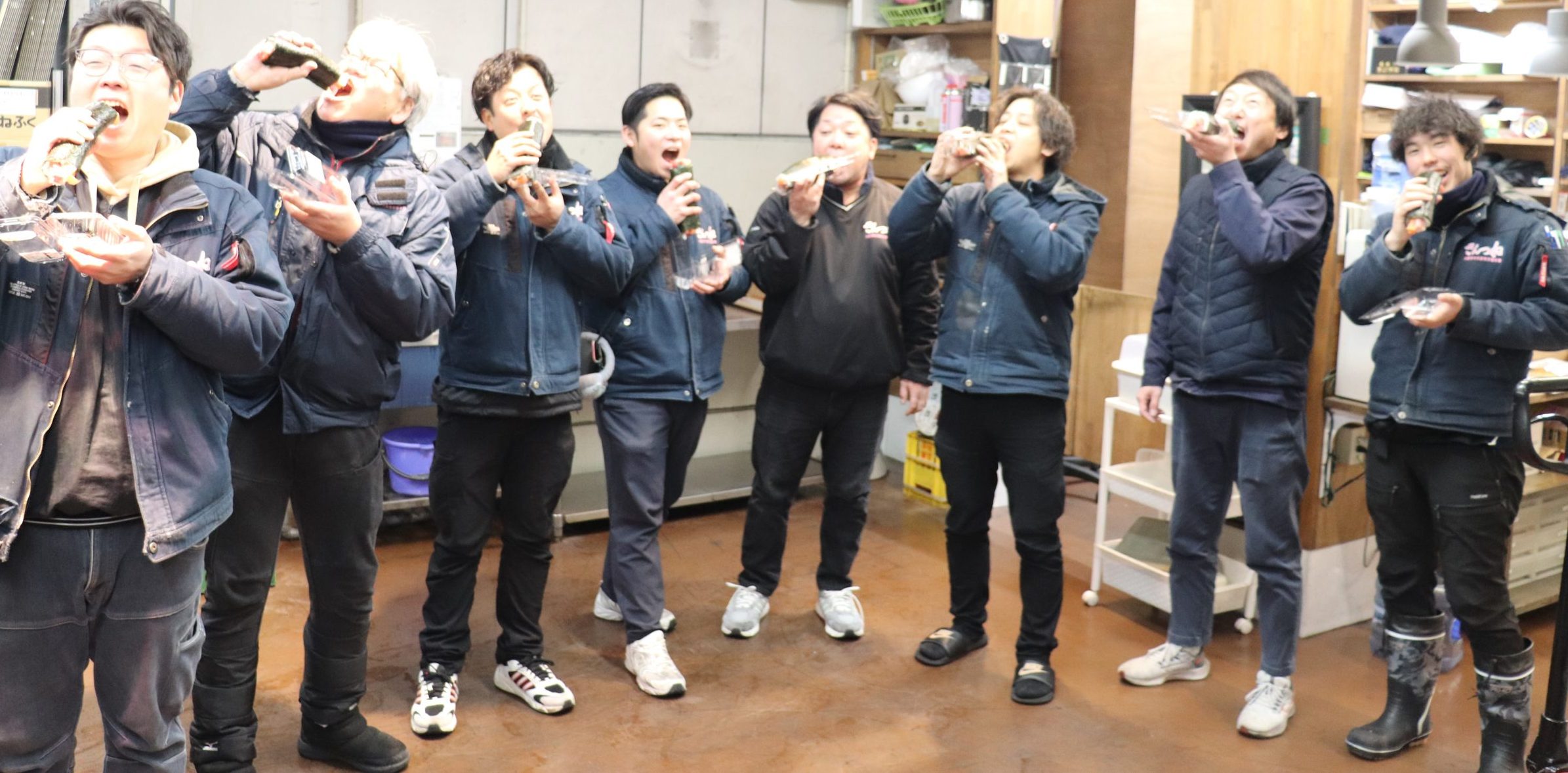 毎年恒例さんつね従業員の恵方巻き丸かぶり風景